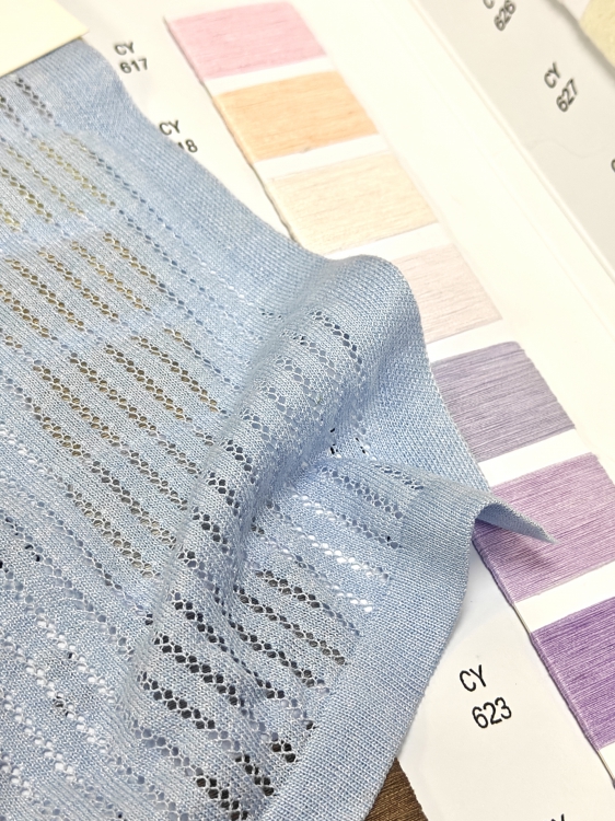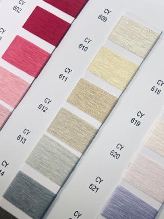 这款面料采用细支纱线工艺,呈现出轻盈细腻的柔滑肌理,搭配低饱和的柔和色彩(如粉、杏、浅紫等),风格偏向清新温柔,适配春季或初秋的轻薄着装场景。