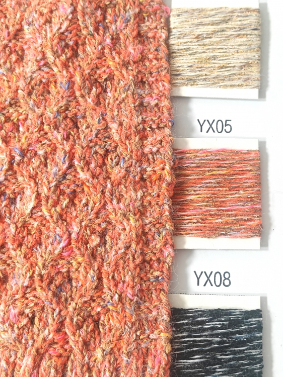 质感塑造:粘胶增强丝滑触感,精梳棉提供柔和基底,搭配混色纱线形成 “鸢夏” 般的渐变肌理,打造复古文艺风格;