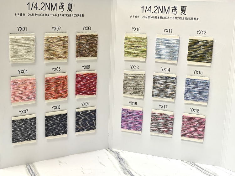以粘胶与精梳棉打造柔和基底,再生纤维践行环保理念,腈纶与聚酰胺保障耐用性,混色工艺塑造复古文艺风格,实现 “风格、环保、舒适、实用” 的多重兼顾,解决传统混色面料环保性不足、肌理单一的痛点。