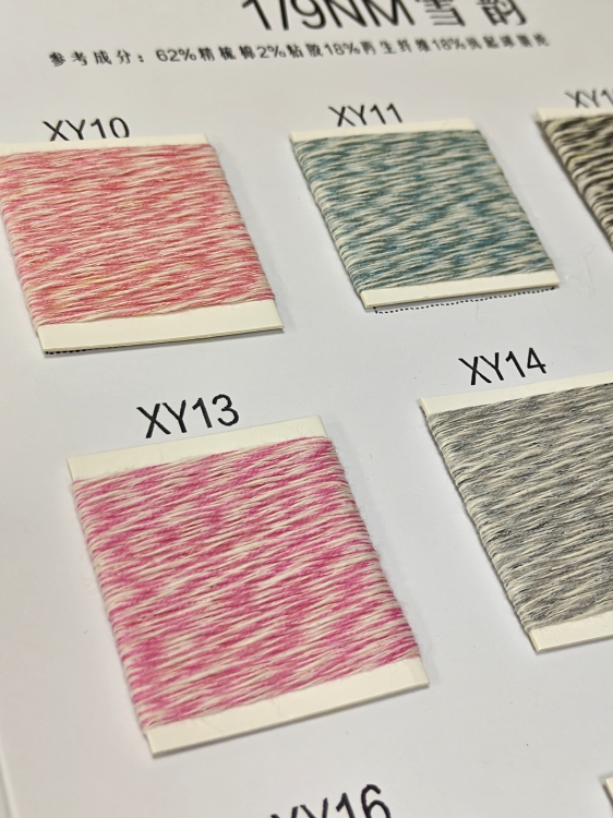 质感塑造:精梳棉赋予面料天然柔和的基底肌理,粘胶增强丝滑触感,搭配混色纱线形成 “雪韵” 般的细腻纹理,打造简约舒适风格;