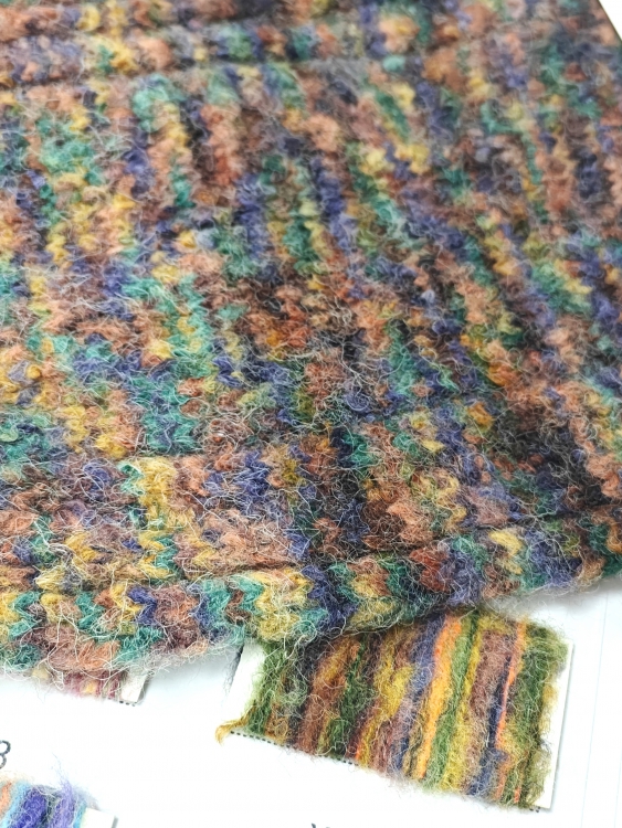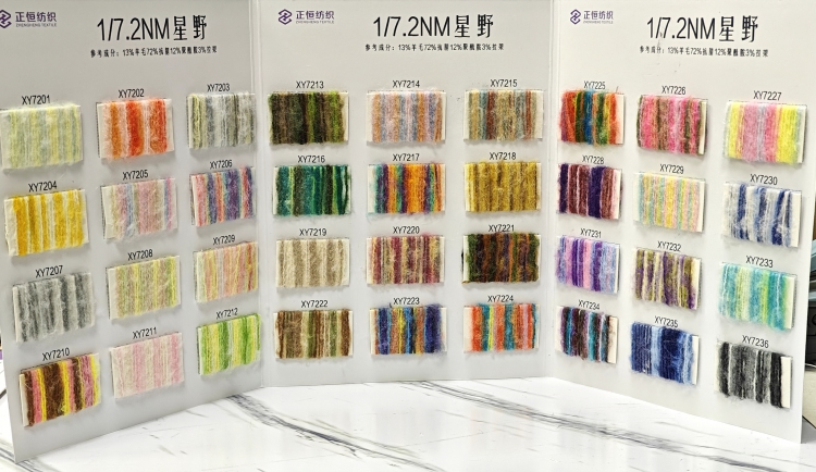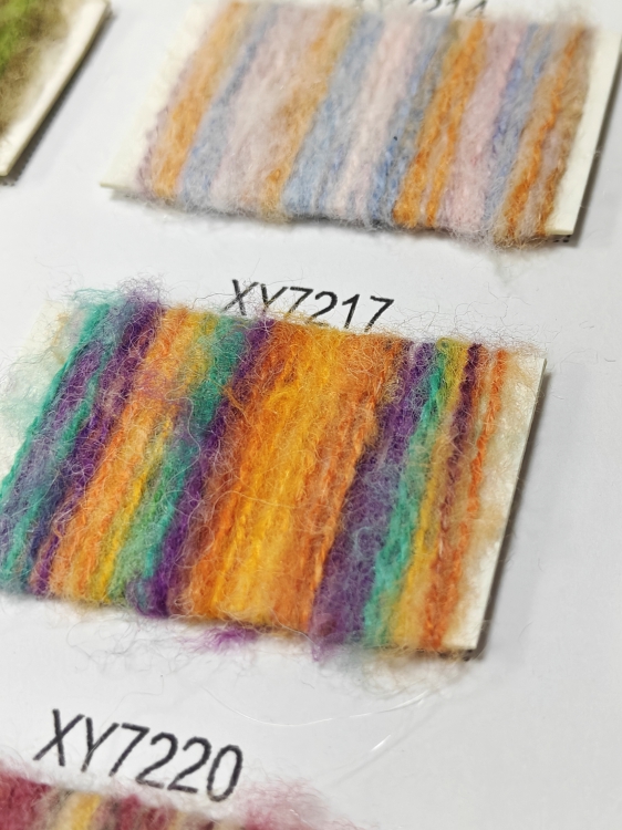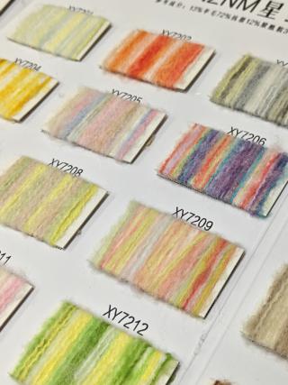 质感塑造:羊毛赋予面料基础绒感,抗腈纤维强化蓬松度,搭配撞色条纹纱线形成个性 “星野” 肌理,打造潮流复古风格;