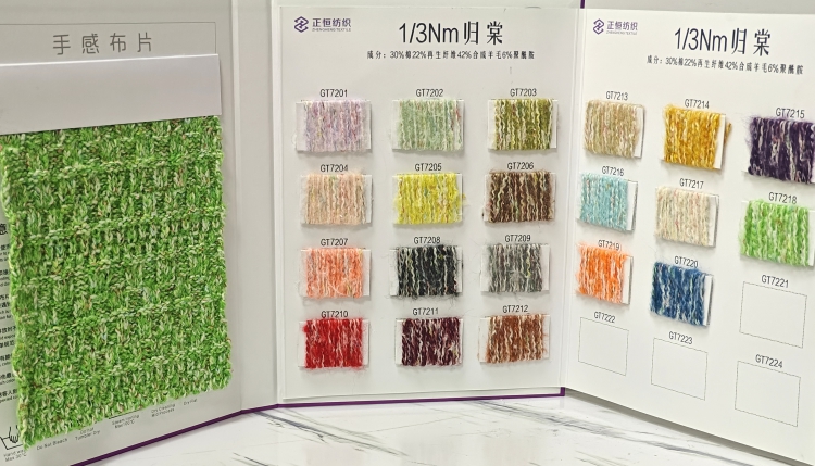 以棉与合成羊毛打造质朴温暖的混色质感,再生纤维践行环保理念,聚酰胺保障耐用性,实现 “风格、环保、舒适、实用” 的多重兼顾,解决传统混色面料环保性不足、易变形的痛点。