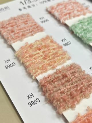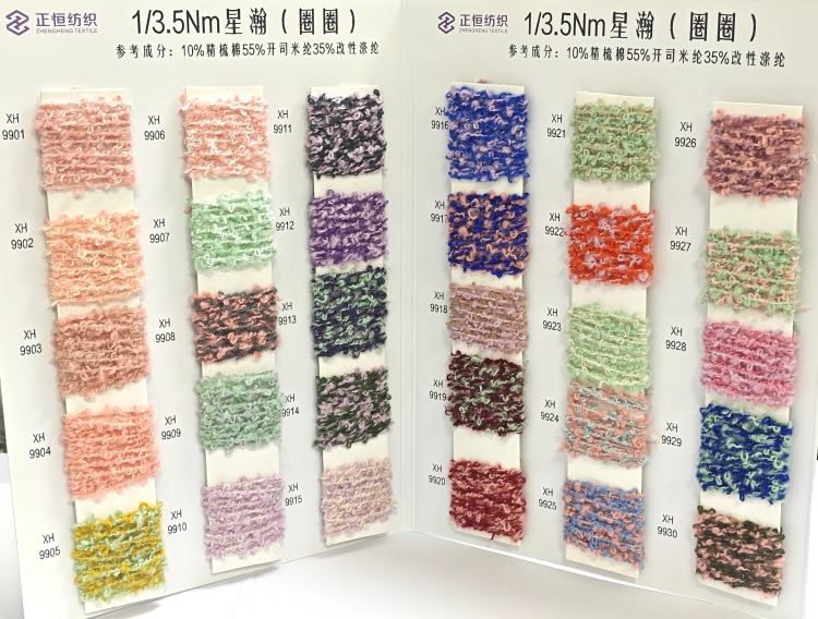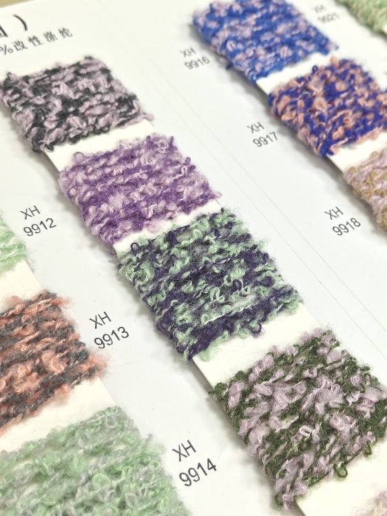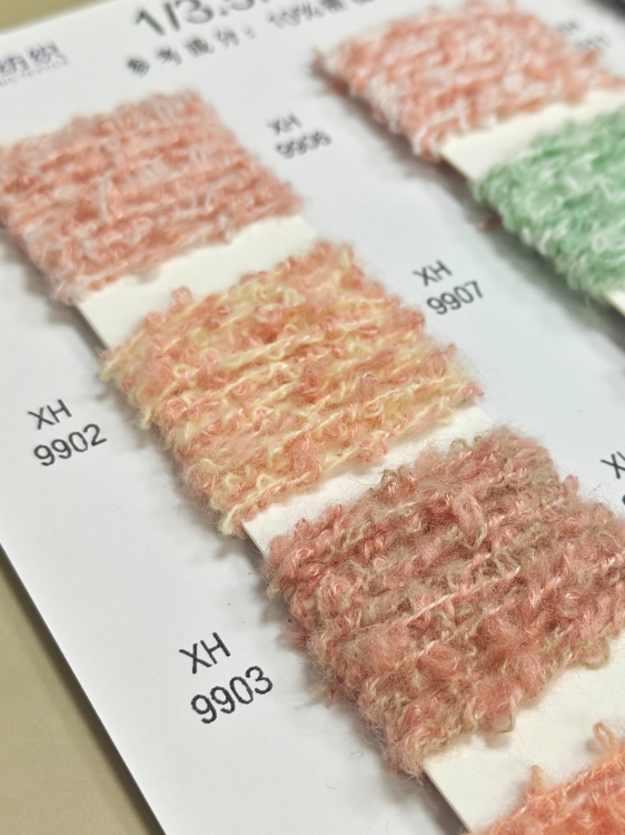 以开司米纶打造蓬松时尚的 “圈圈” 肌理,精梳棉保障亲肤舒适,改性涤纶强化耐用性,实现 “风格、舒适、实用” 的三重兼顾,解决传统圈圈面料易松散、质感生硬的痛点。