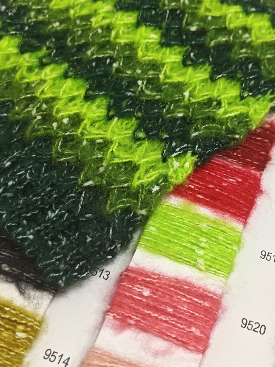 质感塑造:赋予面料蓬松绒感,搭配 “豆豆” 肌理形成独特的颗粒状视觉层次,打造复古时尚风格;